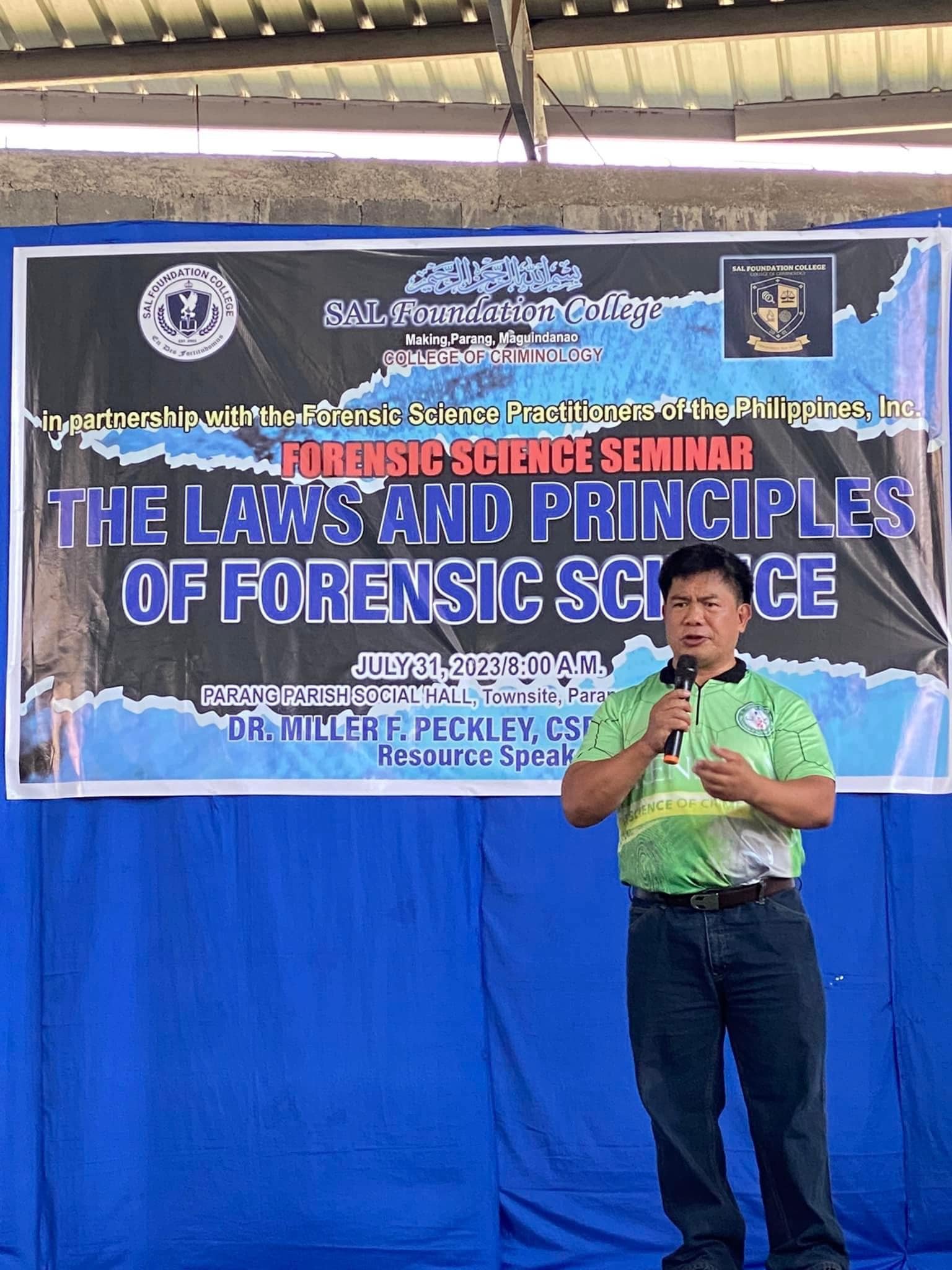 Congratulations to the Criminology Students of SALFC Main Campus for successfully completing the Seminar/Workshop on Forensic Science Rules and Principles! We are honored to have had renowned author and expert in the field of forensic science, Dr. Miller F Peckley, as the resource person for this event. His invaluable knowledge and insights have undoubtedly enriched the learning experience for all the participants.